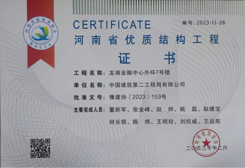 近日,河南省建筑業(yè)協(xié)會發(fā)布《關(guān)于公布2023年度第二批河南省優(yōu)質(zhì)結(jié)構(gòu)工程名單的通知》(豫建協(xié)〔2023〕159號),城發(fā)·金岱智慧產(chǎn)業(yè)園二期和龍湖金融中心外環(huán)7號樓兩項工程順利通過專家組考評,榮獲“2023年度河南省優(yōu)質(zhì)結(jié)構(gòu)工程”獎。
