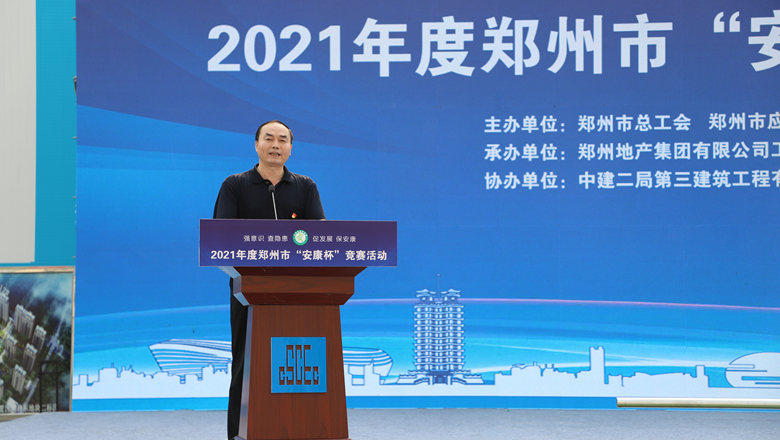 為深入貫徹落實習(xí)近平總書記有關(guān)加強安全生產(chǎn)工作的部署和要求,進一步強化各級各部門、各企業(yè)主體的安全責(zé)任意識,確保我市安全生產(chǎn)形勢持續(xù)好轉(zhuǎn),職工安全健康不斷鞏固。6月11日上午,由鄭州市總工會、鄭州市應(yīng)急管理局、鄭州市衛(wèi)生健康委員會及鄭州市消防救援支隊主辦,鄭州地產(chǎn)集團工會、鄭州西流湖控股有限公司工會承辦的鄭州市2021年“安康杯”競賽啟動儀式在中原新區(qū)廟王東安置區(qū)項目成功舉行。鄭州市相關(guān)組織部門、市總工會成員單位、地產(chǎn)集團、西流湖公司、各參建單位共200余人參加啟動儀式。鄭州市一級巡視員,市總工會黨組書記、主席趙新中、鄭州市衛(wèi)生健康委員會黨組成員、二級調(diào)研員楊德林、鄭州市應(yīng)急管理局三級調(diào)研員安春茂、鄭州市消防救援支隊副支隊長、滅火救援指揮部部長李隆、鄭州市總工會副主席宋少丹、鄭州地產(chǎn)集團有限公司監(jiān)事會主席、工會主席李靜波、鄭州地產(chǎn)集團西流湖公司黨支部書記、董事長、總經(jīng)理 吉獻亮,中建二局第三建筑工程有限公司西北分公司黨委副書記、執(zhí)行總經(jīng)理趙海軍出席儀式。啟動儀式由市總工會勞動和經(jīng)濟部部長宋慧主持。