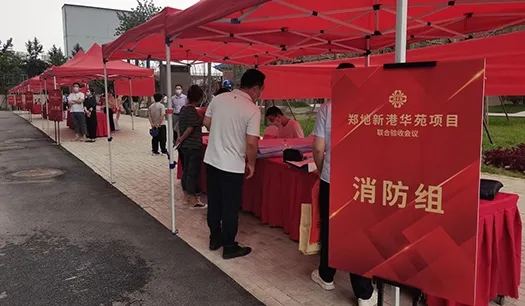 鄭地新港華苑項目于2021年8月26日下午,順利完成由鄭州市城建局牽頭組織,人防、消防、質(zhì)監(jiān)、規(guī)劃等部門共同參與的聯(lián)合驗收,是疫情期間第一個通過聯(lián)合驗收的建設(shè)項目。為嚴(yán)格落實鄭州市新冠肺炎疫情的防控要求,新港華苑項目部提前制定了周密的疫情防控方案,采取了妥善的疫情防控措施,有序組織進入院區(qū)人員掃健康碼、檢查48小時核酸檢測結(jié)果、測量體溫、酒精消殺、分發(fā)防疫包等。經(jīng)過啟動儀式、書面匯報、現(xiàn)場巡查、聯(lián)動測試等環(huán)節(jié),鄭地新港華苑項目順利完成聯(lián)合驗收工作。