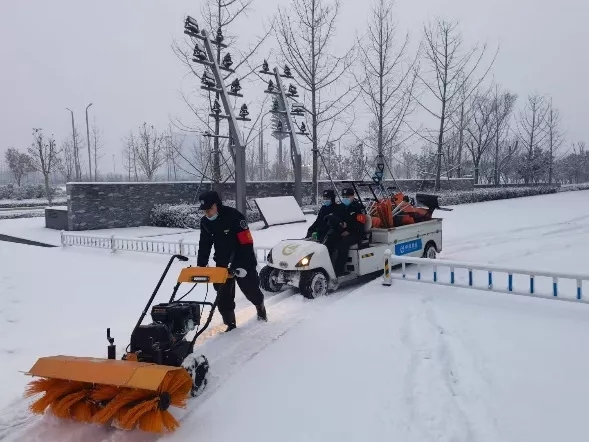 2022年1月19日,河南省氣象臺發(fā)布暴雪藍色預警,為應對2022年二次來襲的暴雪,鄭州奧林匹克體育中心立即啟動應急預案,實行責任區(qū)劃分和全員義務清理相結(jié)合的原則,所有人員“以雪為令,即下即清”,全面出動快速打響清雪除冰戰(zhàn)役,圓滿完成了本次鏟冰除雪工作任務。