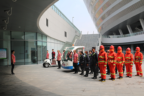 在鄭州奧體中心,沈陽詳細查看地下出入口防汛物資儲備情況,觀看河南鄭地奧體中心管理有限公司組織的防汛應急演練,對奧體中心的防汛工作給予肯定。他強調,要加強組織領導,不斷提高指揮決策、預報預警、動員能力,落實值班制度,備足防汛物資,全面提升應急處置和管理水平。