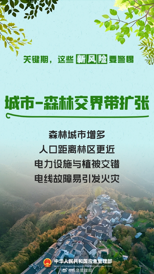 陽春三月,春意盎然。春季氣溫逐漸升高,降水偏少,大風天氣增多。伴隨春耕生產、踏青祭祀等生產生活用火增多,森林火災風險增高。近期,多地陸續(xù)進入春季森林防火關鍵期,以下新風險要警惕!