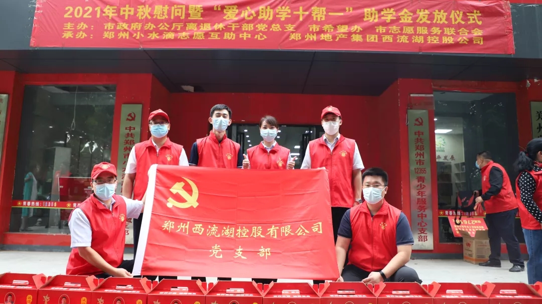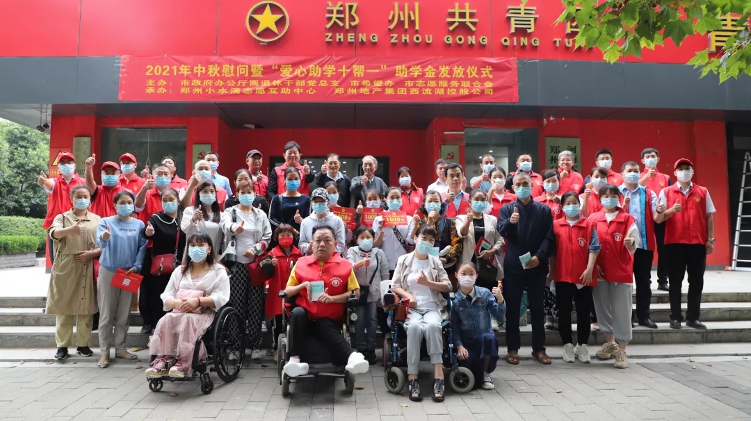 在中秋佳節(jié)來臨之際,由鄭州市政府辦公廳離退休干部黨總支、鄭州市希望工程辦公室、鄭州市志愿服務(wù)聯(lián)合會(huì)主辦,鄭州市小水滴志愿互助中心、鄭州地產(chǎn)集團(tuán)西流湖控股公司聯(lián)合承辦的2021年中秋慰問暨“愛心助學(xué)十幫一”助學(xué)金發(fā)放儀式于9月17日上午在鄭州共青團(tuán)青春家園舉行。