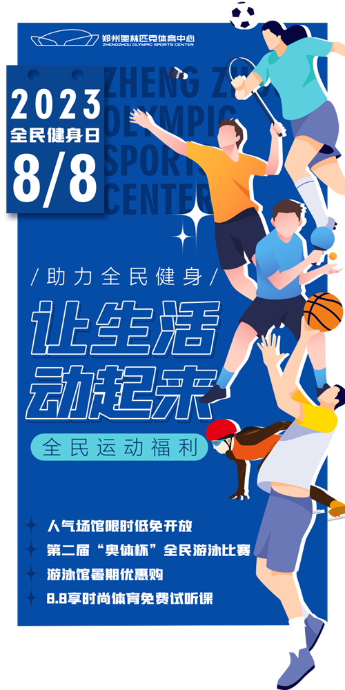 今年的全民健身日,鄭州奧體將延續(xù)人氣場館低免開放的慣例,并推出一系列全民運(yùn)動(dòng)福利,呼吁廣大群眾保持良好的運(yùn)動(dòng)習(xí)慣,讓健身成為生活的一部分,真正享受到體育帶來的健康和快樂!
