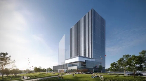 城發(fā)中心以“嵩山書頁巖”為設(shè)計理念,以中空LOW-E玻璃打造極簡幕墻立面,玻璃寬約3米,隱藏式開啟窗。