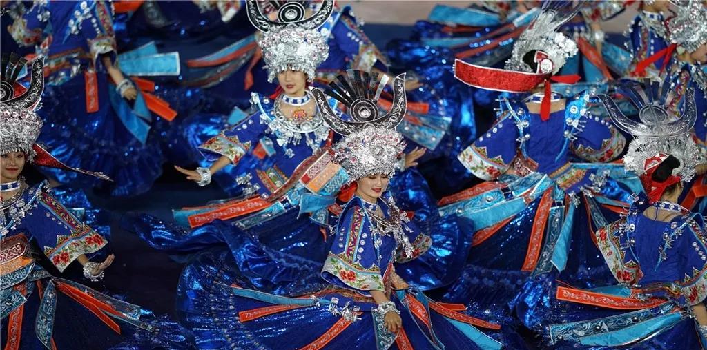 各民族運(yùn)動(dòng)員身著民族盛裝,精神抖擻,闊步走來。各代表團(tuán)行進(jìn)中30秒的駐停表演,展示了中華文化百花園的絢麗多姿,讓現(xiàn)場觀眾贊嘆沉醉。